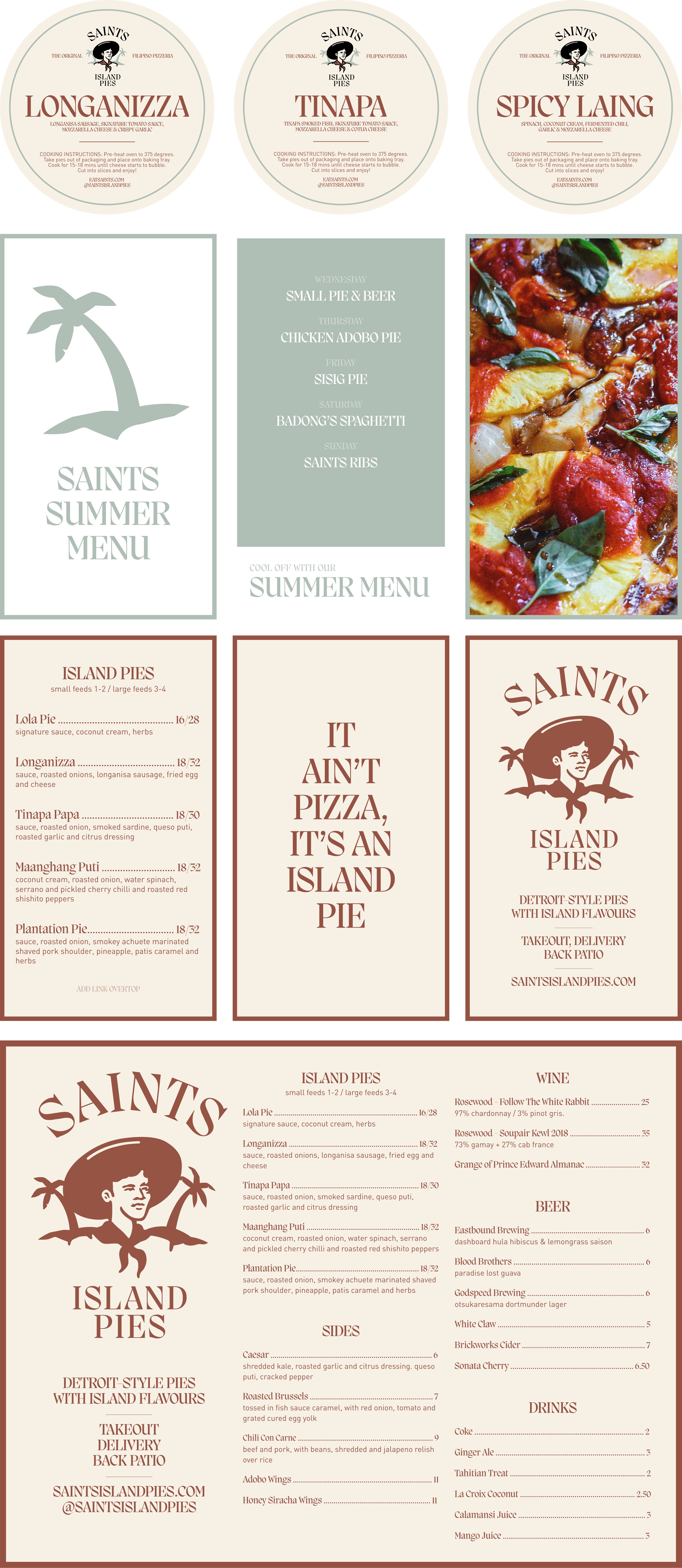 Saints Island Pies is a Filipino-inspired bakery and pizzeria built around heritage, neighbourhood energy, and the belief that food brings people together. I led the full brand identity and brand system — shaping everything from visual strategy to execution.